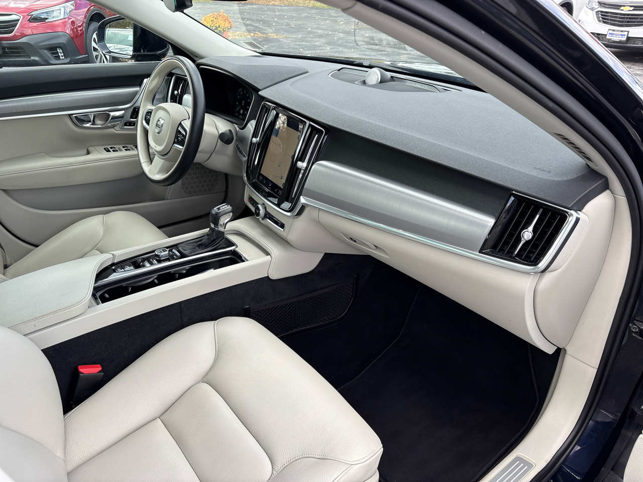 The S90’s exterior showcases timeless Volvo styling with clean lines, LED headlights, and a confident stance. Inside, the cabin offers a truly upscale experience with high-quality materials, genuine wood trim, and comfortable leather seating. The large 9-inch Sensus touchscreen infotainment system provides seamless access to navigation, Bluetooth, and smartphone integration, while features like a panoramic sunroof, heated front seats, and dual-zone climate control enhance every drive.